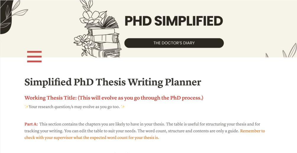Simplified PhD Thesis Writing Planner